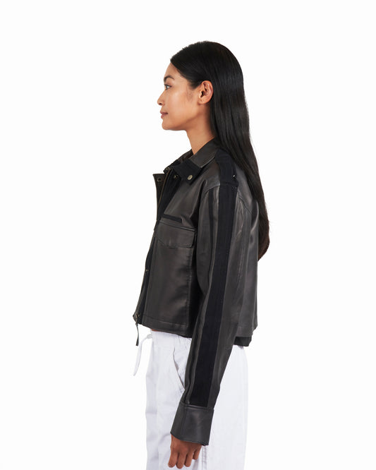 Tina Washed Leather Jacket Black