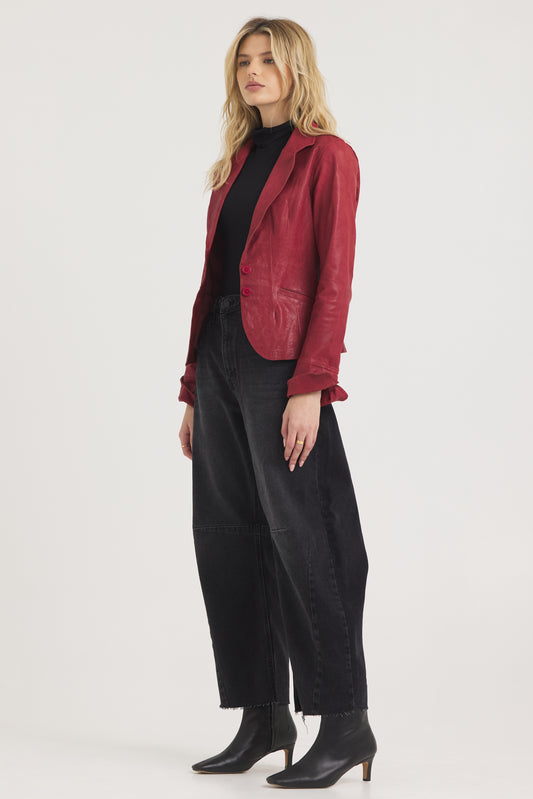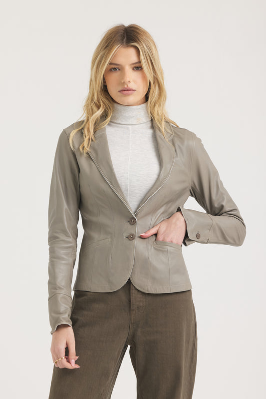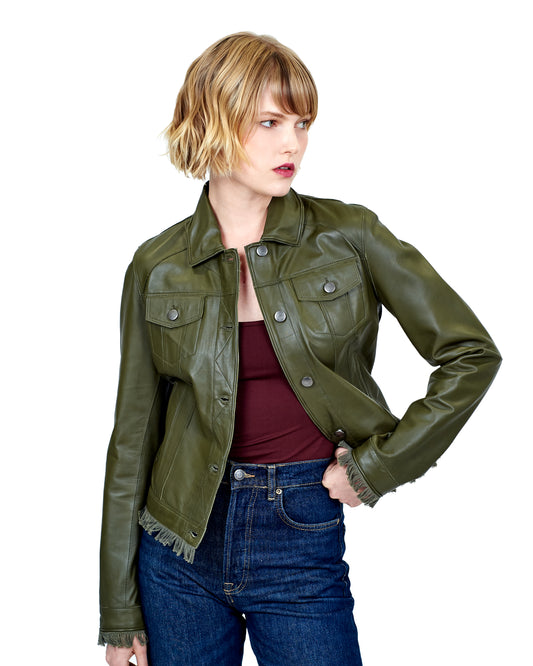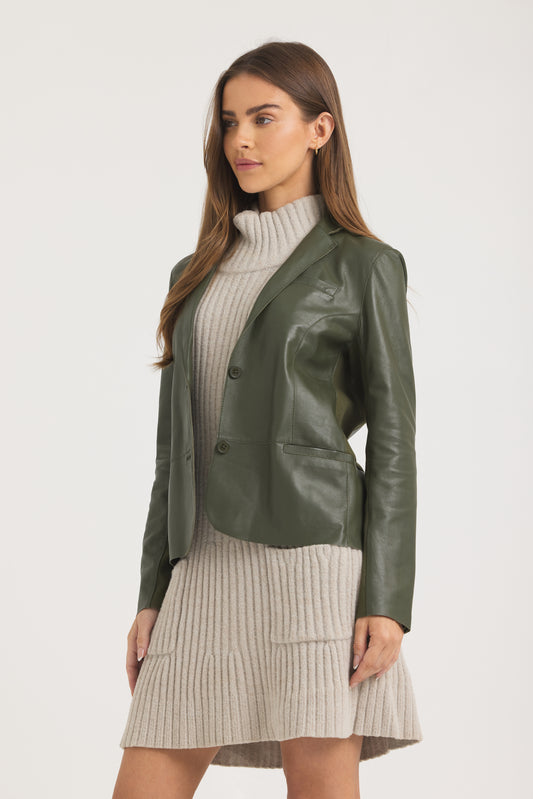 Ana Peacoat Vintage Leather Jacket Dark Olive