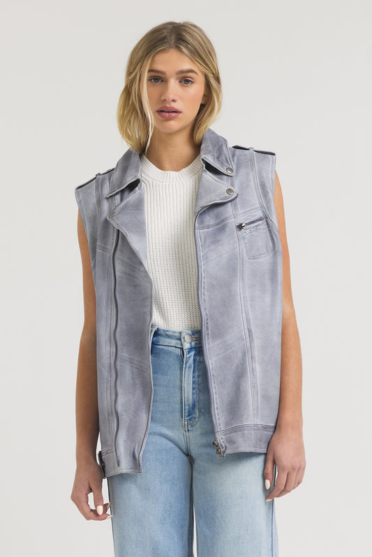 Annie Distressed Leather Jacket Indigo