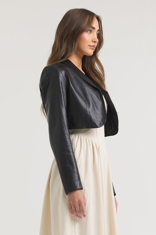 Brie Burnished Leather Jacket Petal