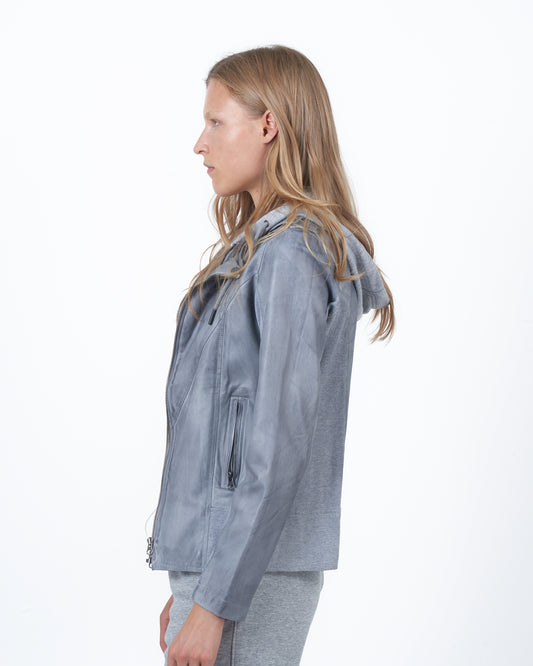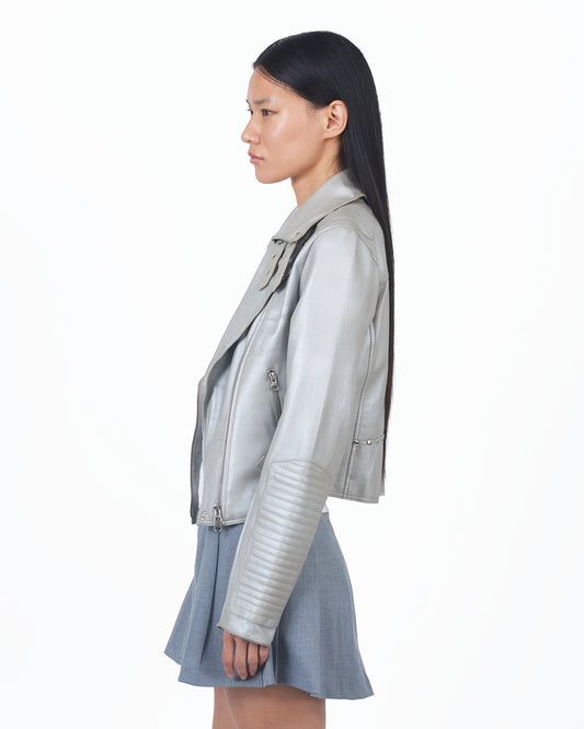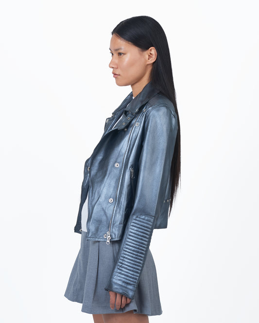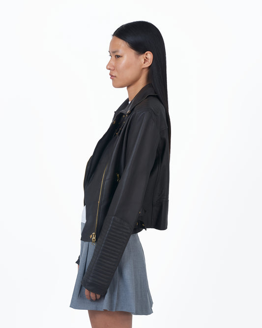 Fallon Burnished Leather Jacket Black/Crème Gold