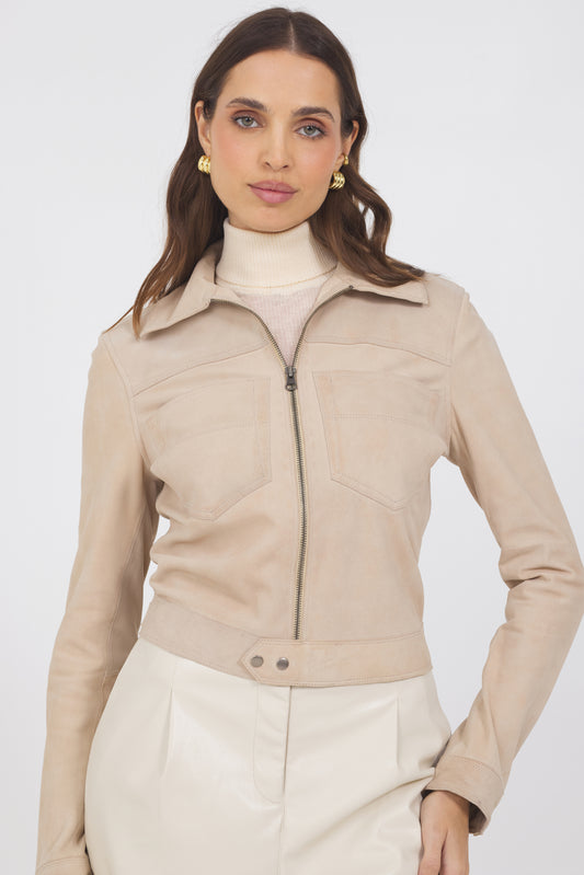 Hayden Waxed Suede Jacket Crème Brulee