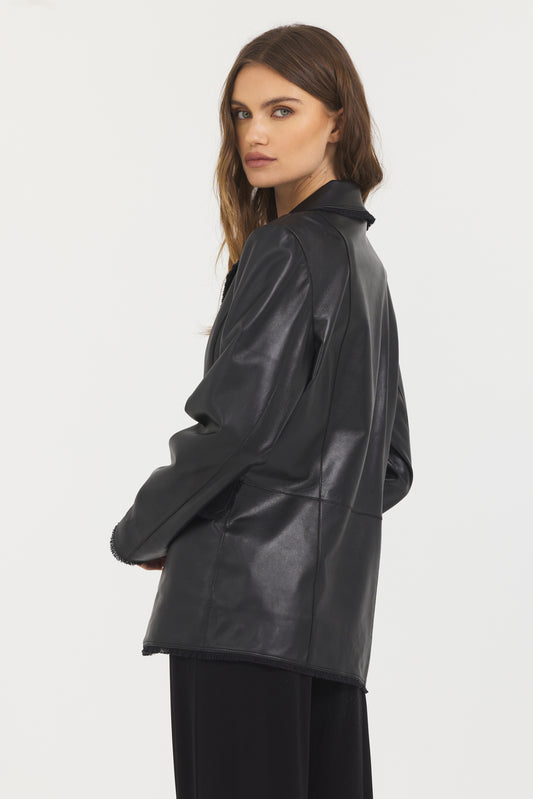 Marcella Washed Leather Jacket Black