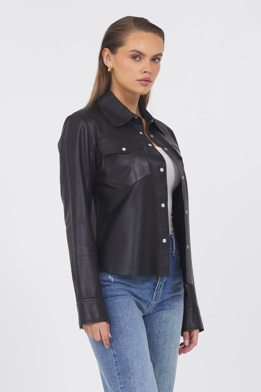 Molly Burnished Leather Jacket Black