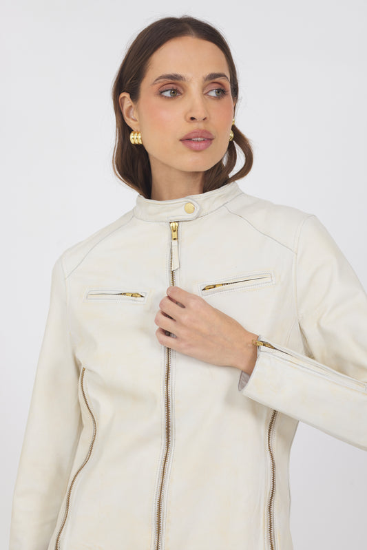 Josey Vintage Leather Jacket Coconut