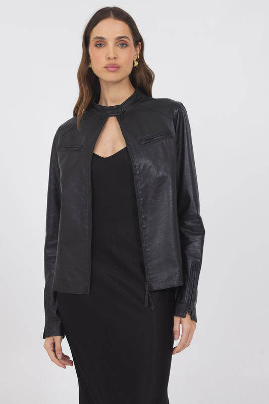 Tracy Distressed Leather Jacket Cappuccino