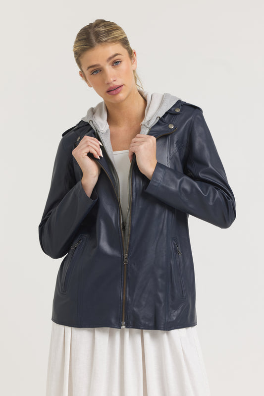 Maxi Burnished Leather Jacket Indigo
