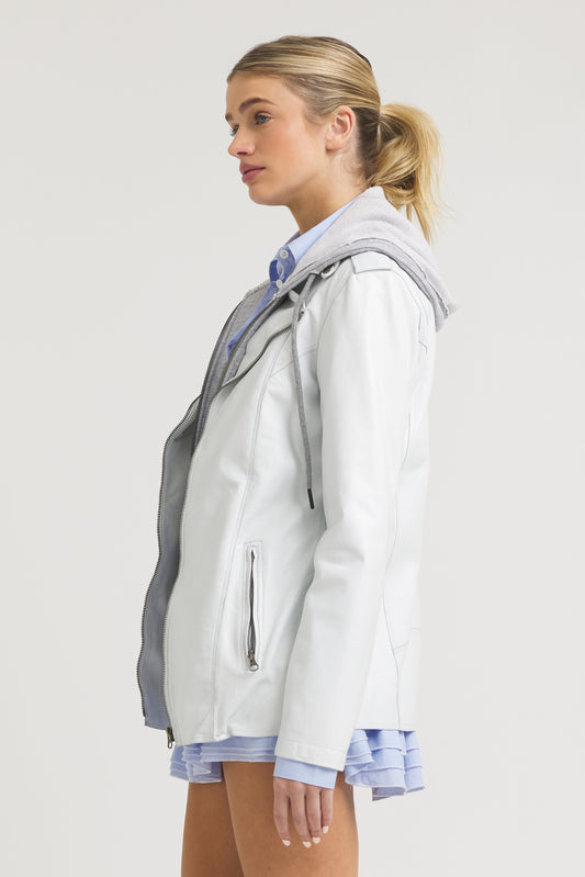 Maxi Burnished Leather Jacket White