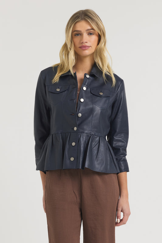 Brie Burnished Leather Jacket Indigo