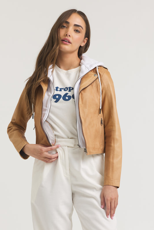 Cara Patina Leather Jacket Sand