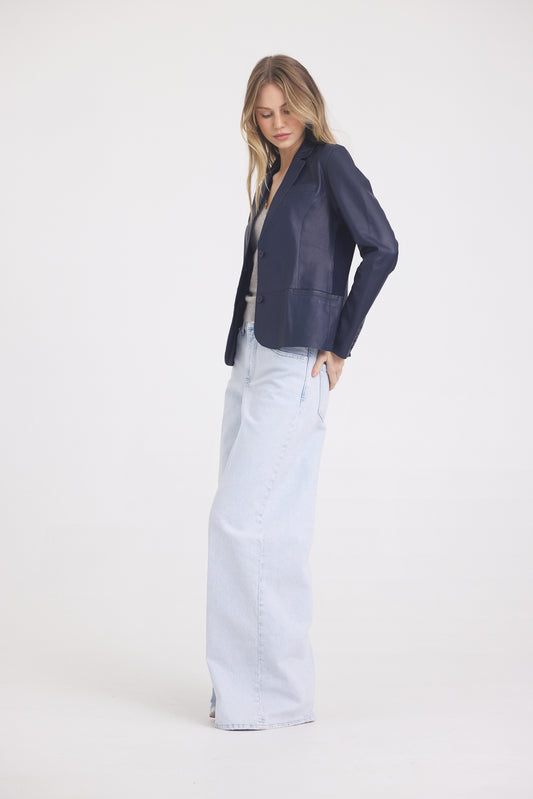 Allison Burnished Leather Jacket Indigo