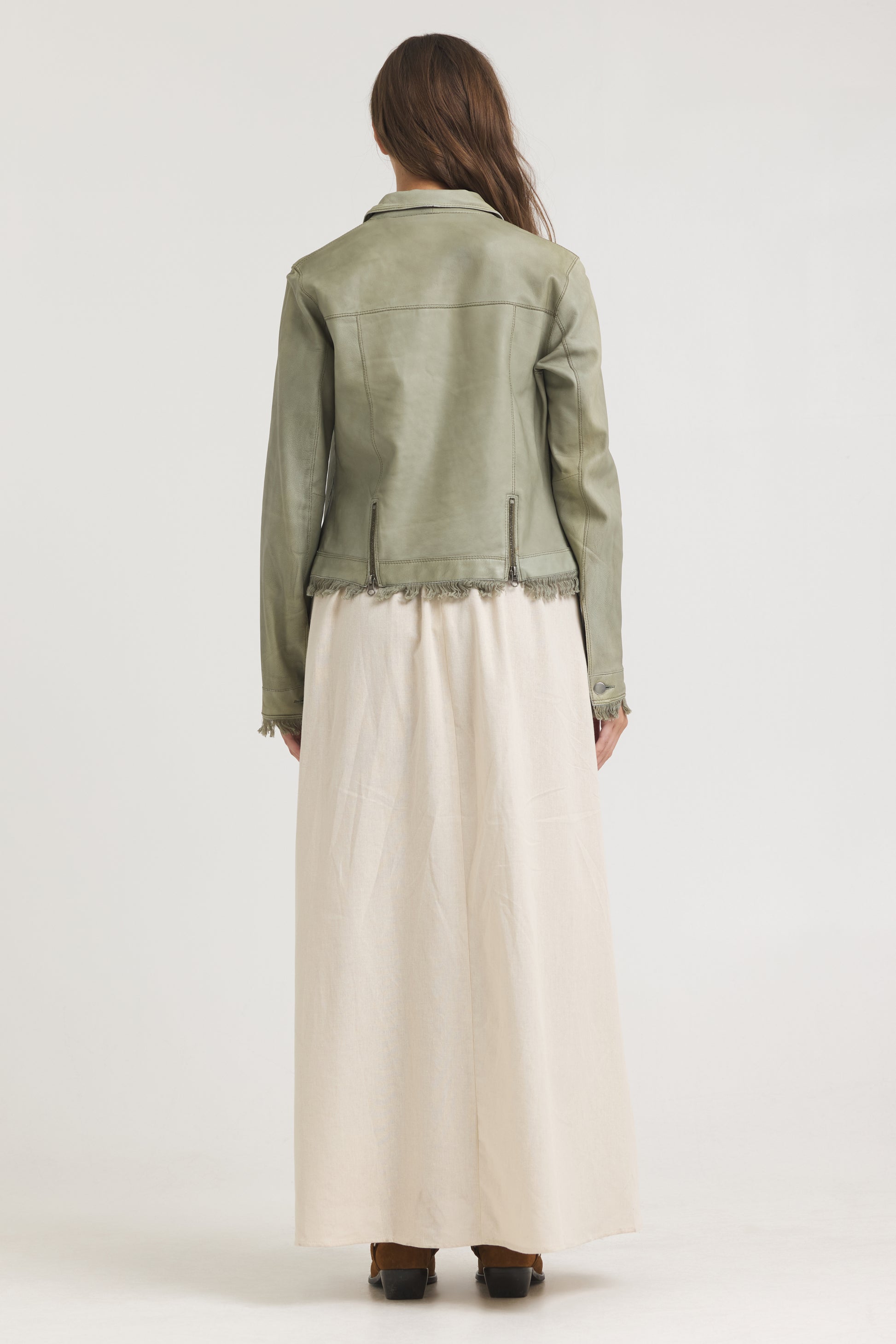 • MATERIAL: 100% Leather. Cotton detailing at hem and sleeves.